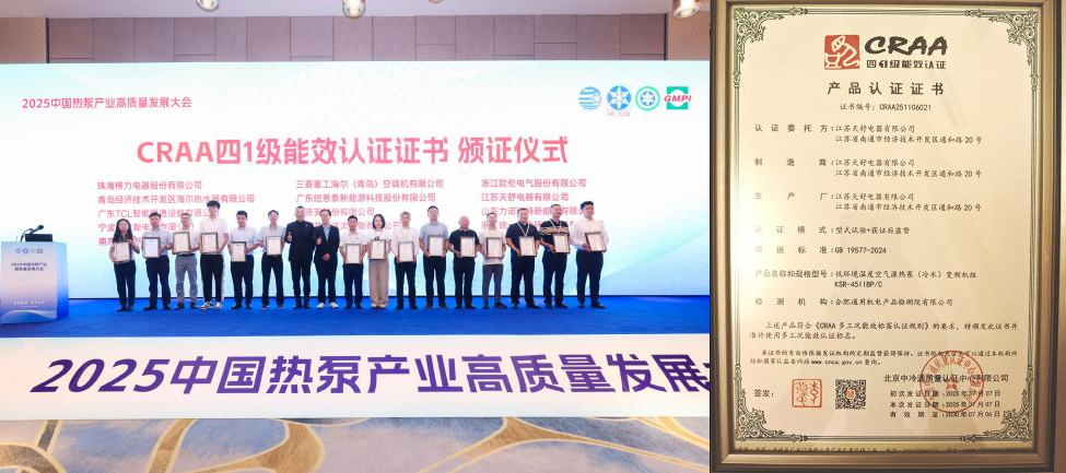 TENESUN's "Low Ambient Temperature Air Source Heat Pump (Chilled Water) Variable Frequency Unit KSR-45IIBP/C" has successfully passed the rigorous review of the CRAA, the sole certification management and implementation agency, and has been awarded CLASS++++ ONE Energy Efficiency Certification by the China Refrigeration and Air-Conditioning Industry Association (CRAA), complying with the "CRAA Multi-Condition Energy Efficiency Label Certification Rules." The facility also allows the use of the Multi-Condition Certification Mark. This facility's exceptional energy efficiency demonstrates TENESUN's deep expertise in heat pump technology R&D and manufacturing. Its high energy efficiency will provide customers with a more energy-efficient and environmentally friendly experience, contributing to the achievement of green and low-carbon development goals.